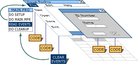 An assembled Visual FoxPro application typically presents a user with a menu and one or more forms for entering or displaying data. You provide functionality and maintain data integrity and security by attaching code to certain events. Queries and reports allow your users to extract information from the database.