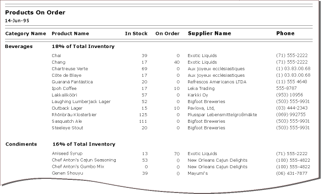 Tasmanian Traders sells imported specialty foods from around the world. The employees use a Products On Order report to keep track of products being ordered.