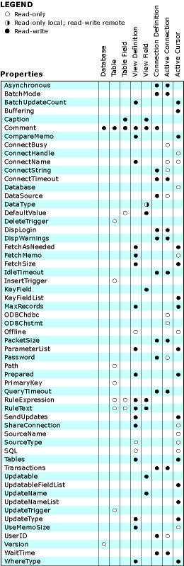 | DeleteTrigger | Tables: see DBGETPROP( ). |