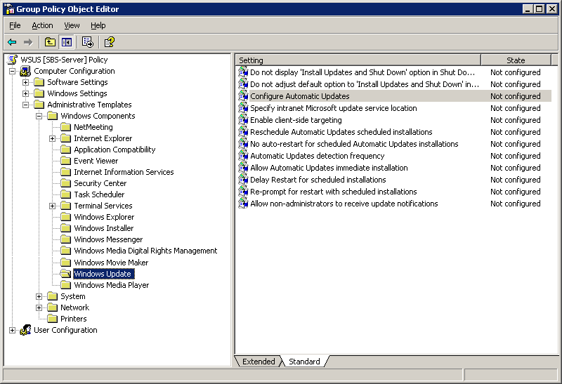 In Group Policy Object Editor, expand Computer Configuration, expand Administrative Templates, expand Windows Components, and then click Windows Update.