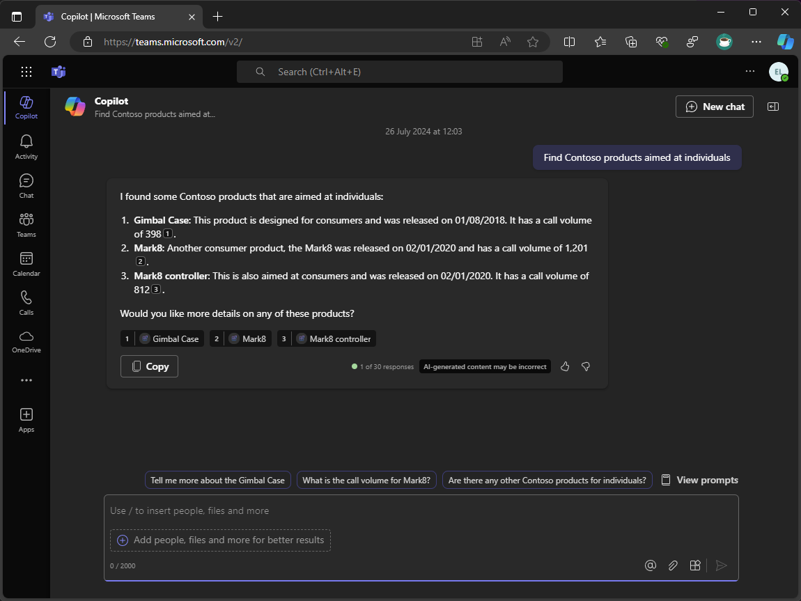 It works with Microsoft 365 Copilot as a plugin, enabling it to query the product data on behalf of the user and use the returned data in its answers.