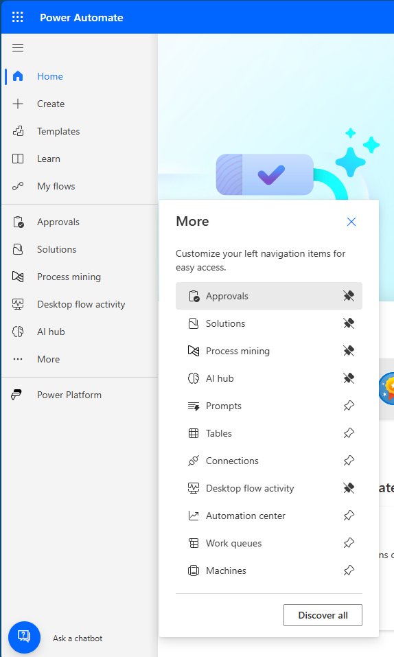 Go to Microsoft Power Automate and make sure that you're in the correct environment.