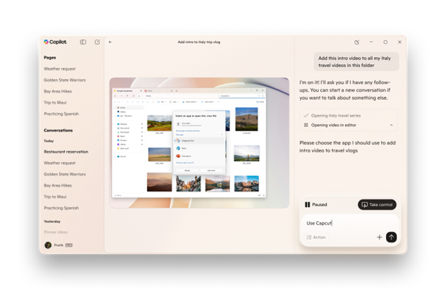 While Copilot Actions is working, users can monitor its progress, stay informed at every step, and take control at any time. When sensitive actions or important decisions are involved, Copilot Actions might request additional user approval to take those specific steps—ensuring their consent and putting them in charge before anything critical happens.