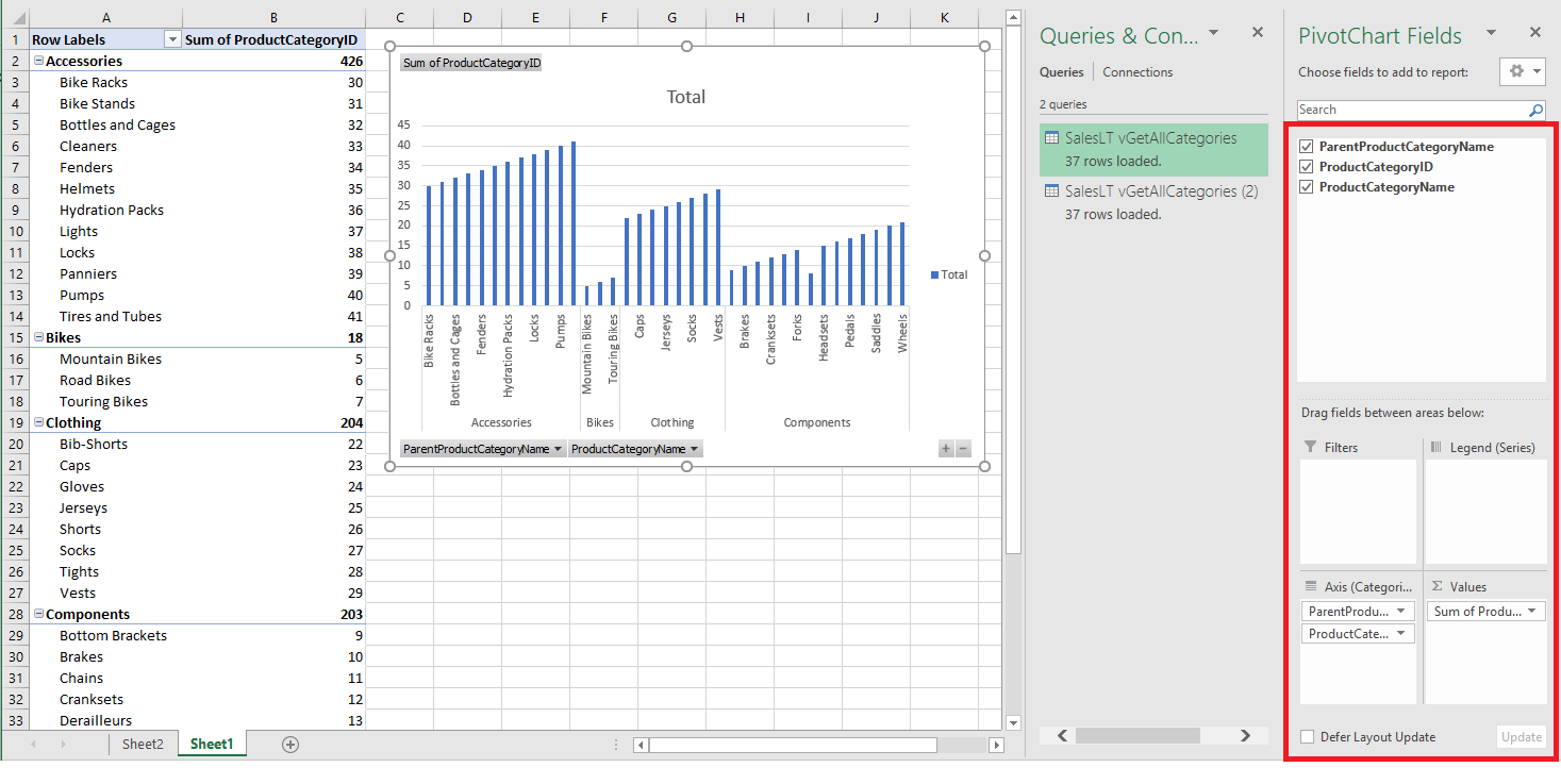 vGetAllCategories), and then select Load to move the data from your database to your Excel spreadsheet.
