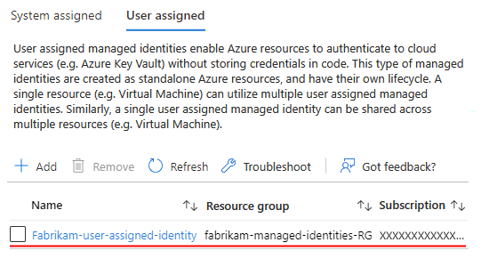 From the managed identities list, select the user-assigned identity you want.