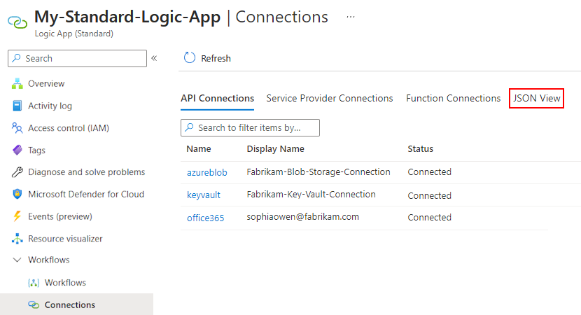 On the resource sidebar, under Workflows, select Connections.