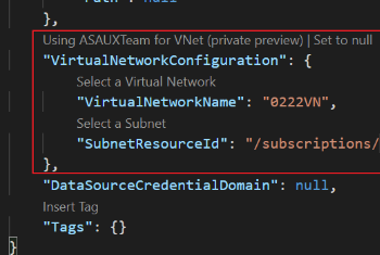 In Visual Studio Code, reference the subnet within your ASA job. This step tells your job that it must work with a subnet.
