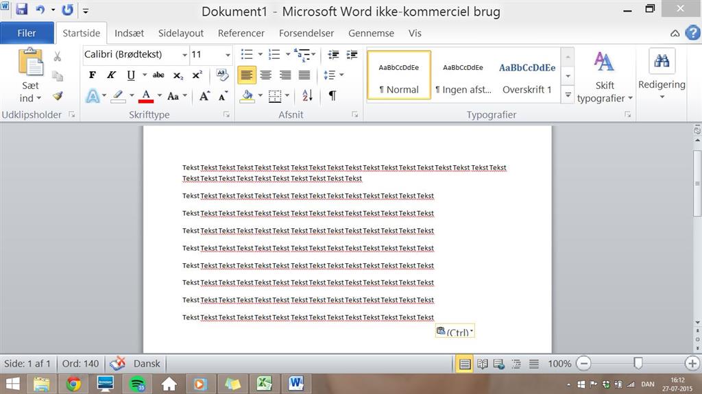 Jeg er kommet til at trykke på et eller andet så værktøjslinjen i word er forstørret. Ligeledes er ikonerne på skrivebordet samt feltet i højre top ("minimer, forstør, luk"). Jeg kan ikke få det ændret tilbage igen. Har førsøgt at ændre i skærmopløsningen og tekststørrelsen, men det hjælper ikke. På billedet af wordprogrammet kan man se et lille w-ikon øverst i venstre hjørne. Dette er den almindelige størrelse. Også proceslinjen er almindelig størrelse.
