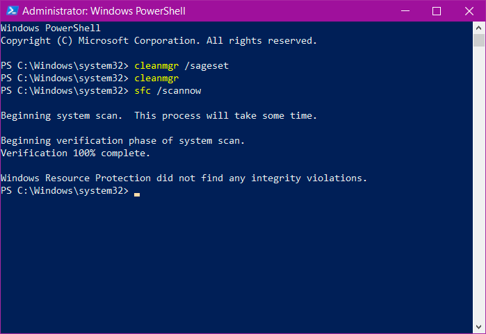 - skriv sfc /scannow