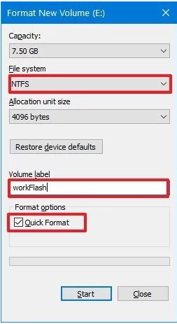 - I dropdown menuen Filsystem vælger du NTFS