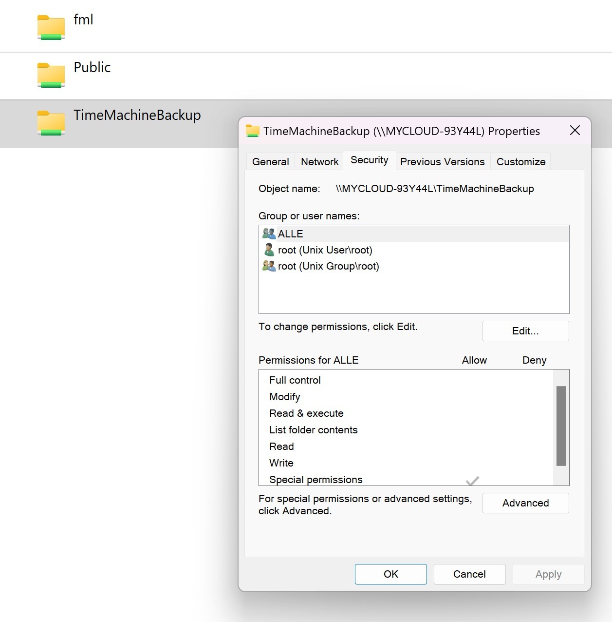 Problemet er, at en lokal bruger oprettet i en tredjeparts enhed - netværksdrev - jeg kan ikke ændre noget i netværksdrevet (My Cloud Home)