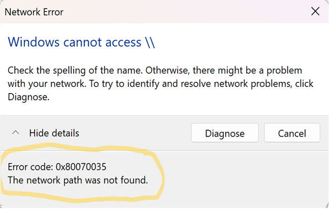 Kan jeg slet ikke forvente, at nogen hjælper med en fejlkode i Windows 11 på mit hjemmenetværk (undtagen en forbindelse til My Cloud Home).
