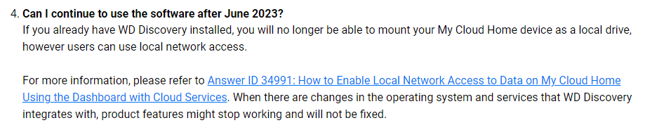 Jeg har en My Cloud Home og for adgang på mit hjemmenetværk har jeg brugt en apps fra WD Discovery Disktop som ikke virker mere