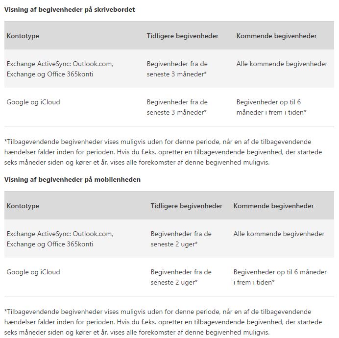 Er der noget galt med min opsætning, eller kan nogen bekræfte at Microsoft har sat Outlook-app'en til kun at kunne vise 96 dage gamle aftaler?