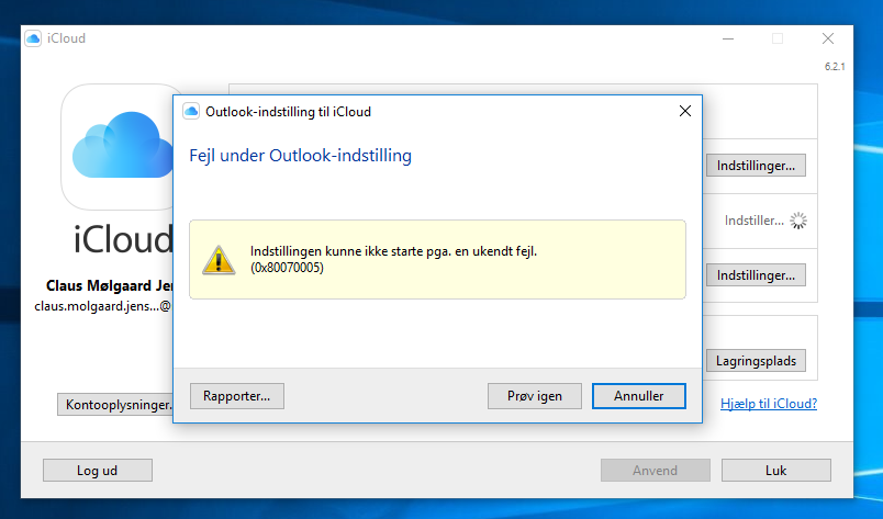 Når jeg forsøger at synkronisere via iCloud får jeg følgende fejl: 0x80070005