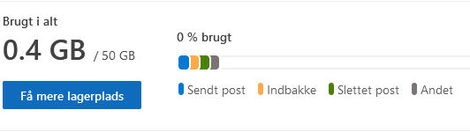 E-mail-lagermængden har været indstillet til 50 GB pr. Person i nogen tid og er ikke ændret. I februar flyttede Microsoft e-mail-lageret til OneDrive. På OneDrive er der nu to forskellige lagersektioner.