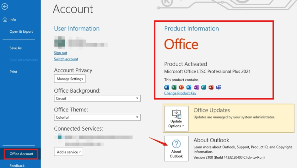 Du kan klikke på Filer - Office-konto og give mig versionsoplysningerne og abonnementsgodkendelsen for din klassiske Outlook. Tak for din tålmodighed og samarbejde.