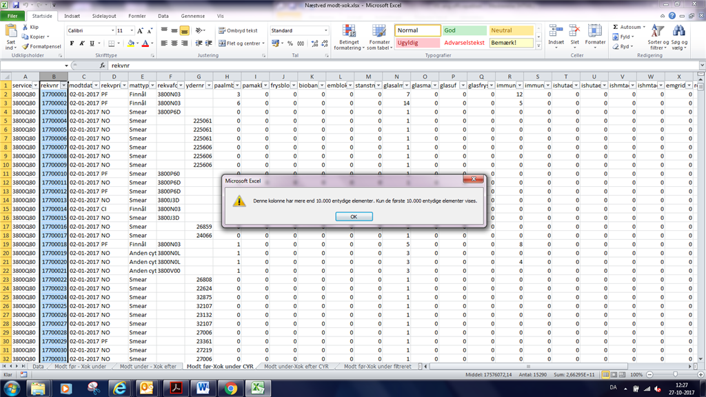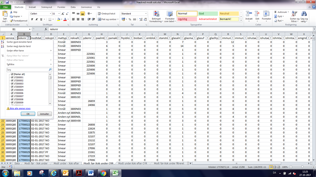 Hvis du er sikker på du har kunne filtrere på over 10.000 unikke værdier, så vil jeg anbefale dig disse trin:
