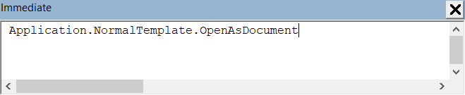Du kan åbne den normale skabelon til redigering ved hjælp af VBA-editoren. Tryk på Alt+F11 (Fn+Alt+F11 på nogle computere) for at åbne editoren. I det umiddelbare vindue nederst i editortypen: Application.NormalTemplate.OpenAsDocument