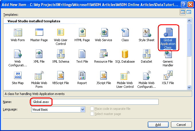 Figure 3: Add the Global.asax File to Your Web Application s Root Directory (Click to view full-size image)