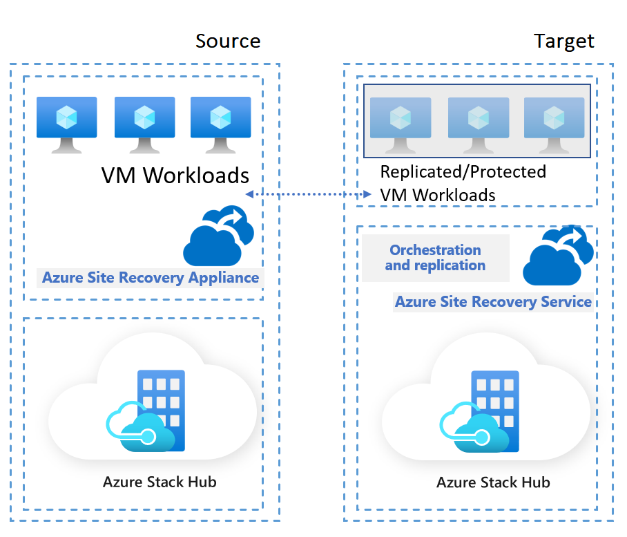 Azure Site Recovery on Azure Stack Hub helps ensure business continuity by keeping business apps and workloads running during outages. Azure Site Recovery on Azure Stack Hub replicates virtual machine (VM) workloads from a primary site to a secondary location. When an outage occurs at your primary site, you fail over to a secondary location, and access apps from there. After the primary location is running again, you can fail back to it.
