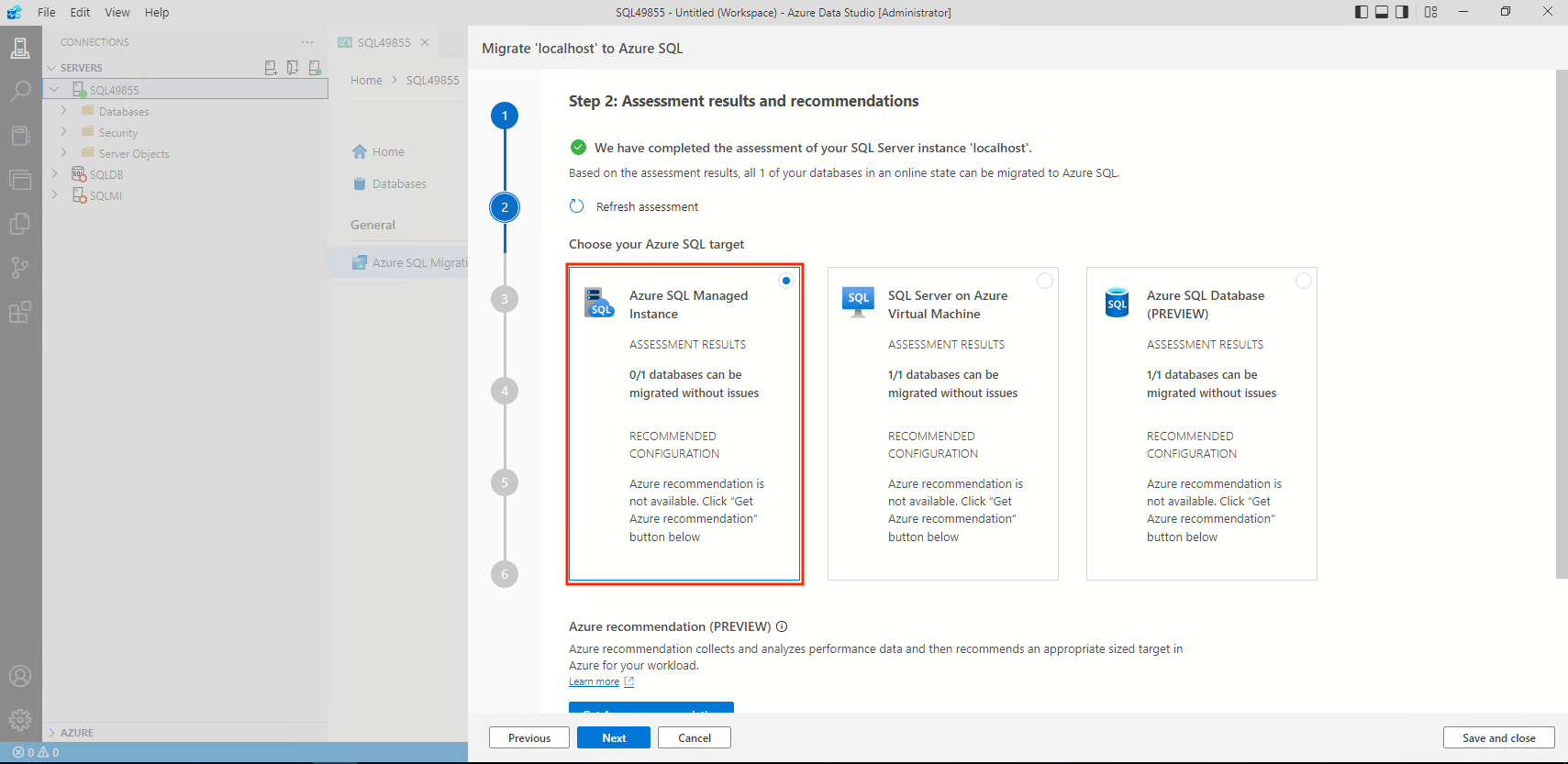 Screenshot that shows the Migrate to Azure SQL wizard.