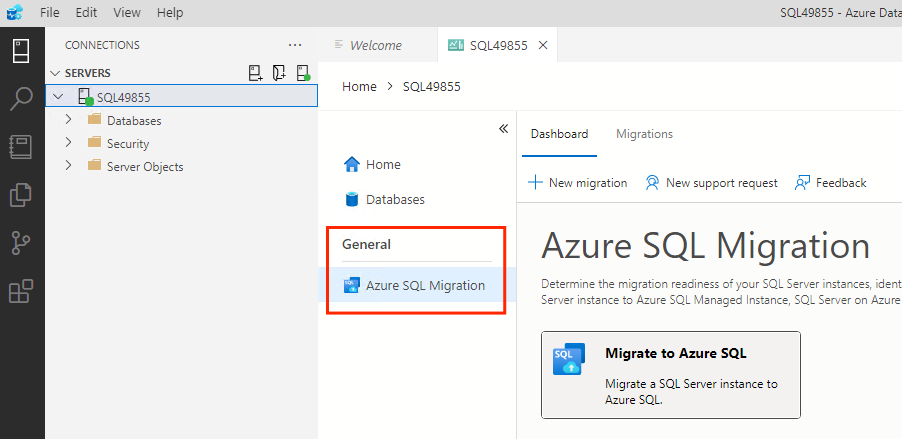 3. In the server menu under General, select Azure SQL Migration.