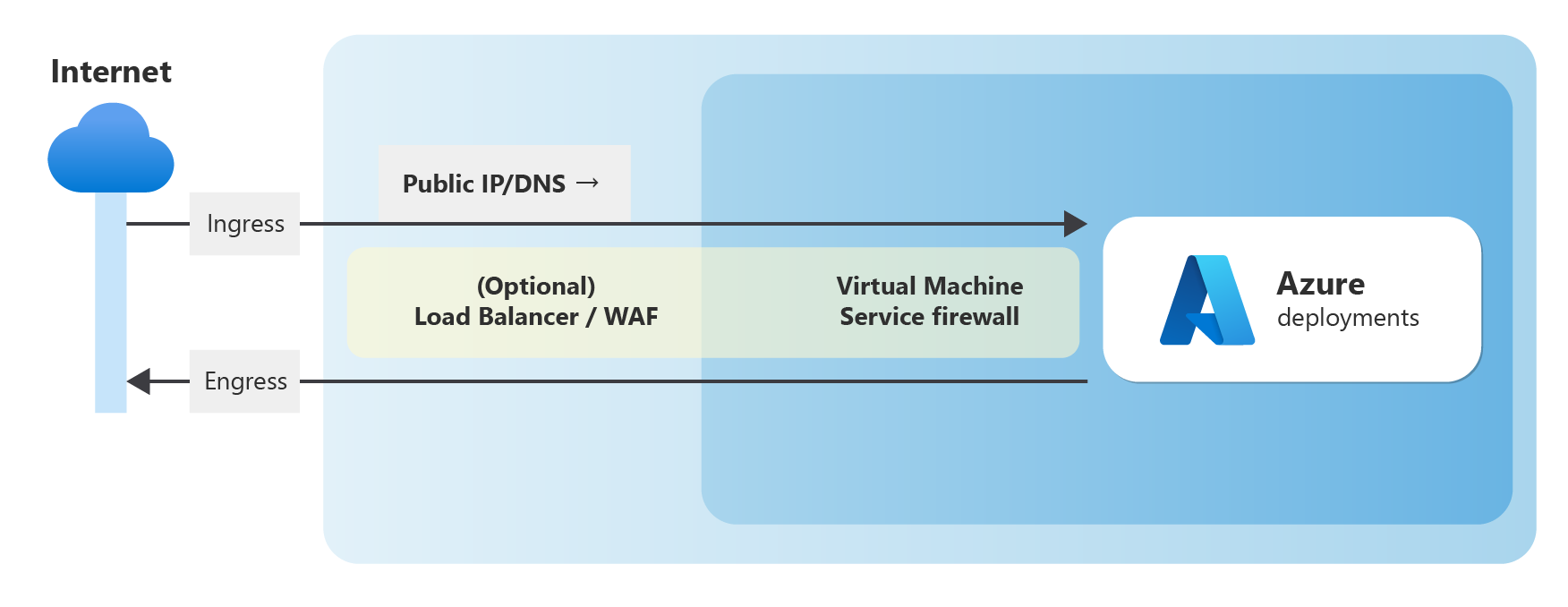If you expect a service to be exposed to the internet, take advantage of the service-level firewall that's available for most Azure resources. When you use this firewall, you can set rules based on access patterns. For more information, see the Azure service firewalls section in this article.
