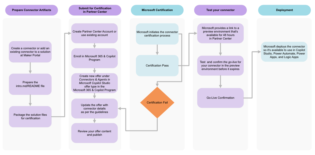 This article applies to verified publishers. It explains how to submit your connector and/or agent-ready connector package to Microsoft through Partner Center for certification.