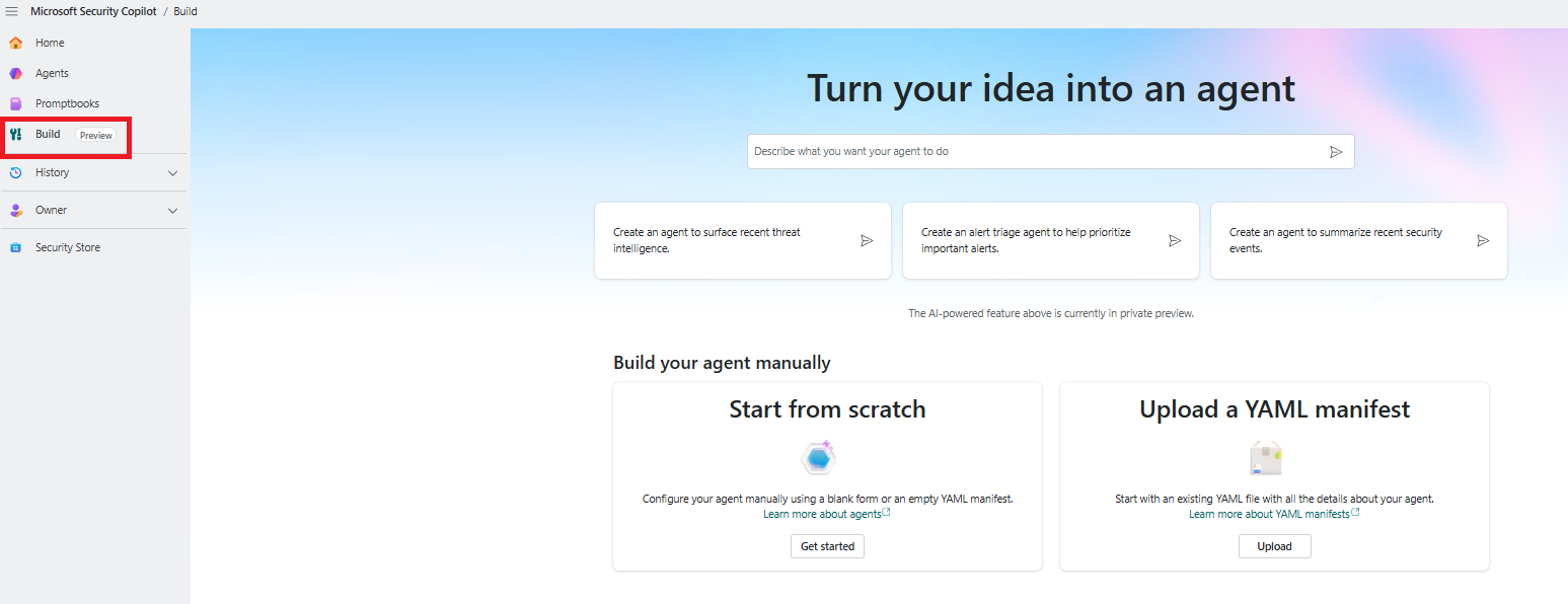 Navigate to Build in Security Copilot