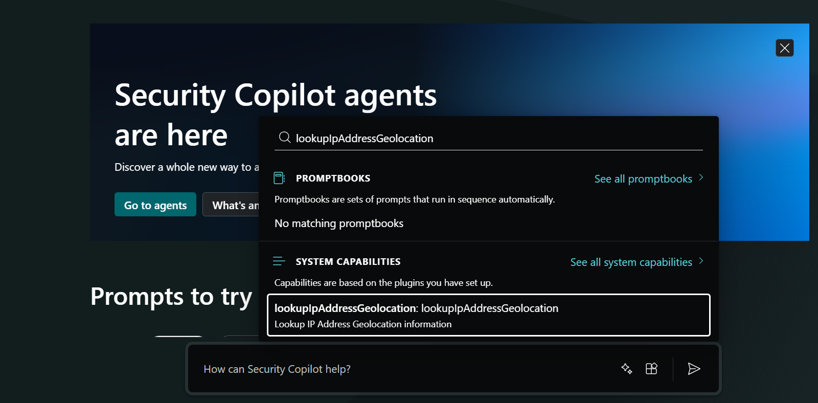 AgentDefinitions) defined.You can test this tool or plugin by navigating to System Capabilities in Prompts and search for