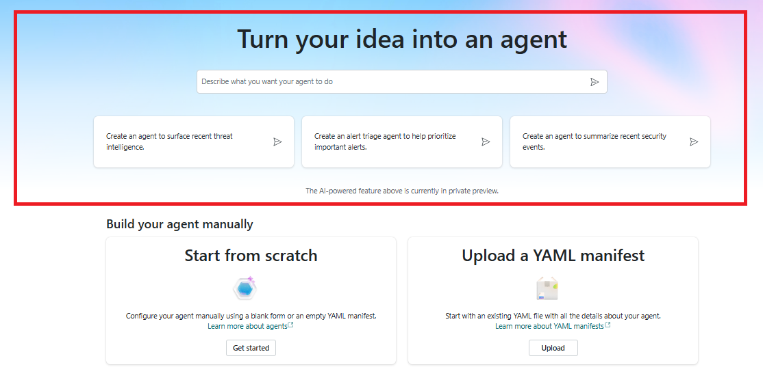 You can build agents using natural language and answer questions that Security Copilot poses to help you build your agent.