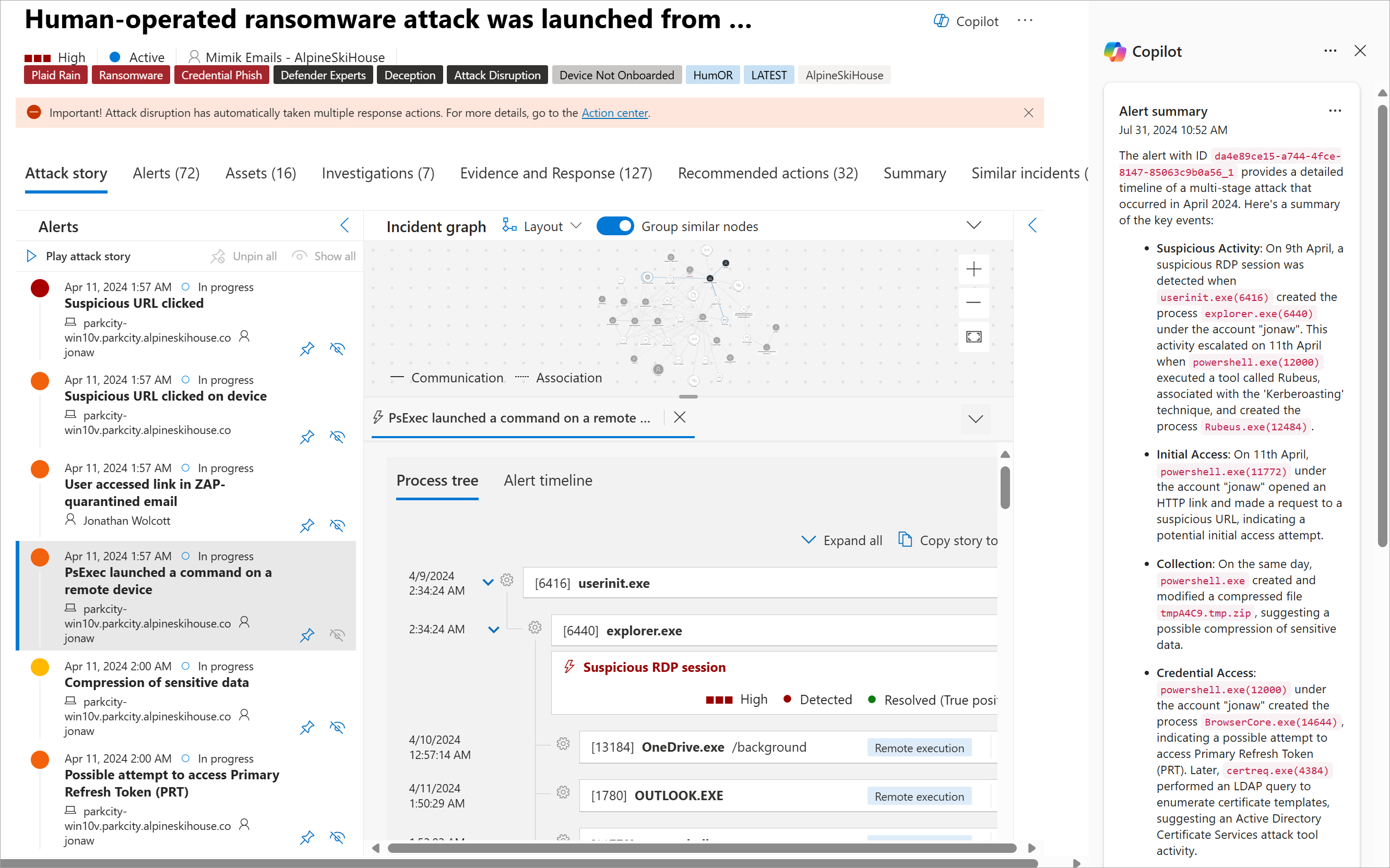 In addition, Security Copilot generated an assessment through a summary report and provided a set of recommendations to contain the incident, which can also be used to improve skills.