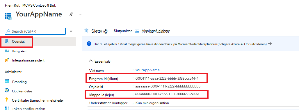 Registrer et nyt program i Microsoft Entra-administrationscenter. Du kan få flere oplysninger under Hurtig start: Registrer et program med Microsoft Entra-administrationscenter.