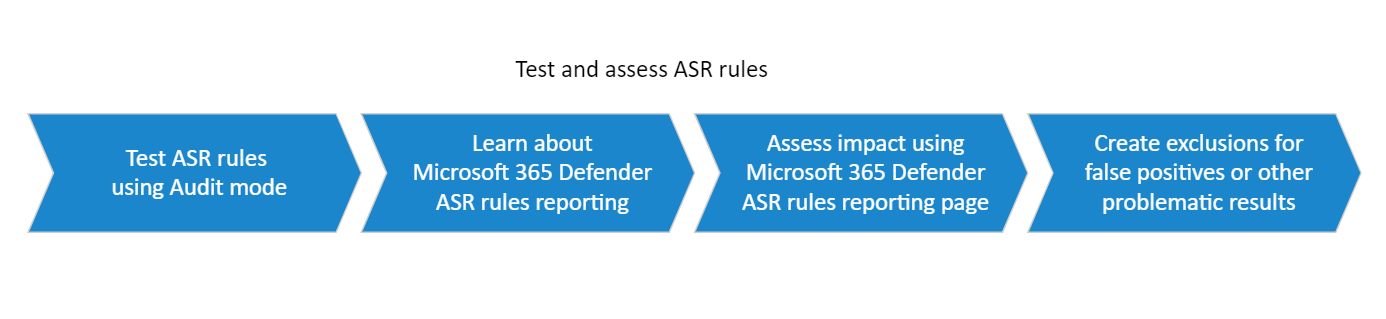 Test Microsoft Defender for Endpoint regler for reduktion af angrebsoverfladen hjælper dig med at afgøre, om regler hindrer line of business-handlinger, før du aktiverer regler. Ved at starte med en lille kontrolleret gruppe kan du begrænse potentielle arbejdsafbrydelser, når du udvider din udrulning på tværs af organisationen.