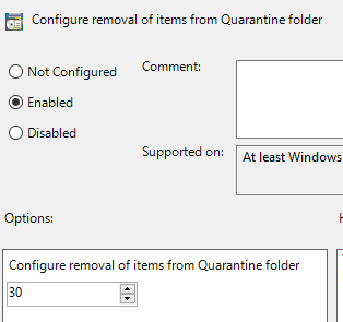 Konfigurer fjernelse af elementer fra karantænemappen i mappen Karantæne .