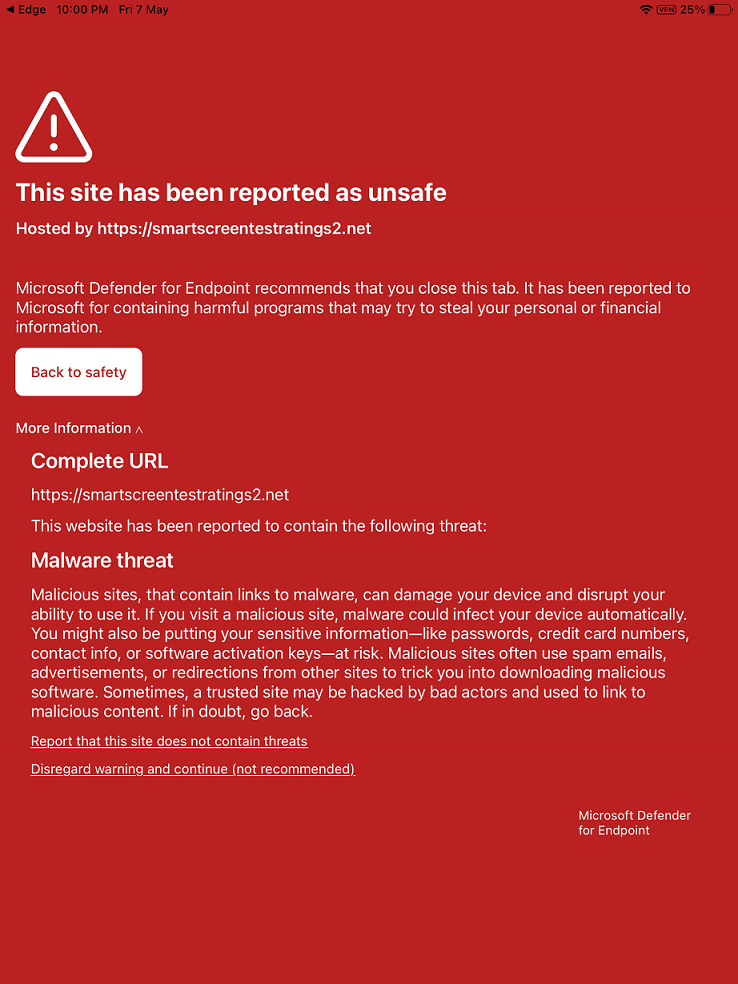 Microsoft Defender for Endpoint beskytter dig mod phishing eller andre webbaserede angreb. Hvis der registreres et skadeligt websted, blokeres forbindelsen, og der sendes en besked til organisationens Microsoft Defender portal. Beskeden indeholder domænenavnet på forbindelsen, fjern-IP-adressen og enhedsoplysningerne.