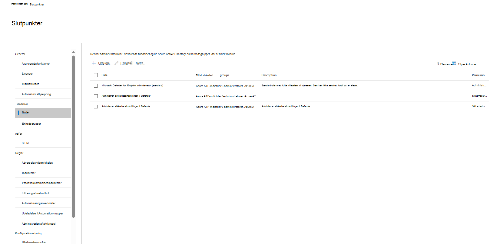 På Defender-portalen skal du vælge Indstillinger>Slutpunkter>Roller.