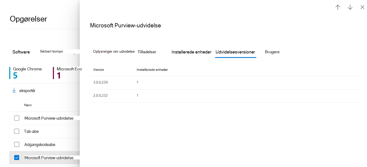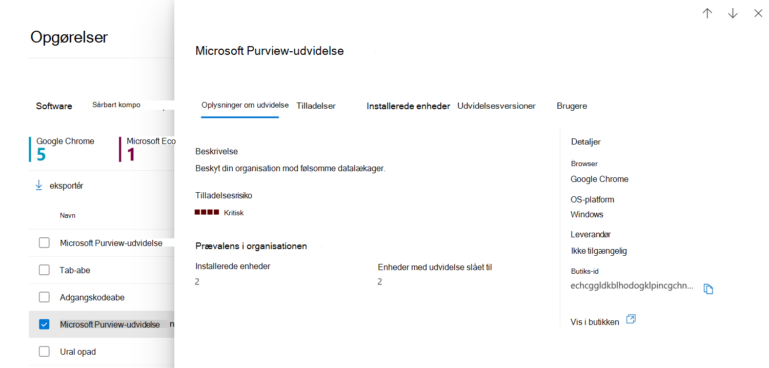 De tilgængelige oplysninger hjælper dit sikkerhedsteam med at få mere at vide om installerede udvidelser og bruge disse oplysninger til at træffe beslutninger om, hvordan du vil administrere udvidelser.