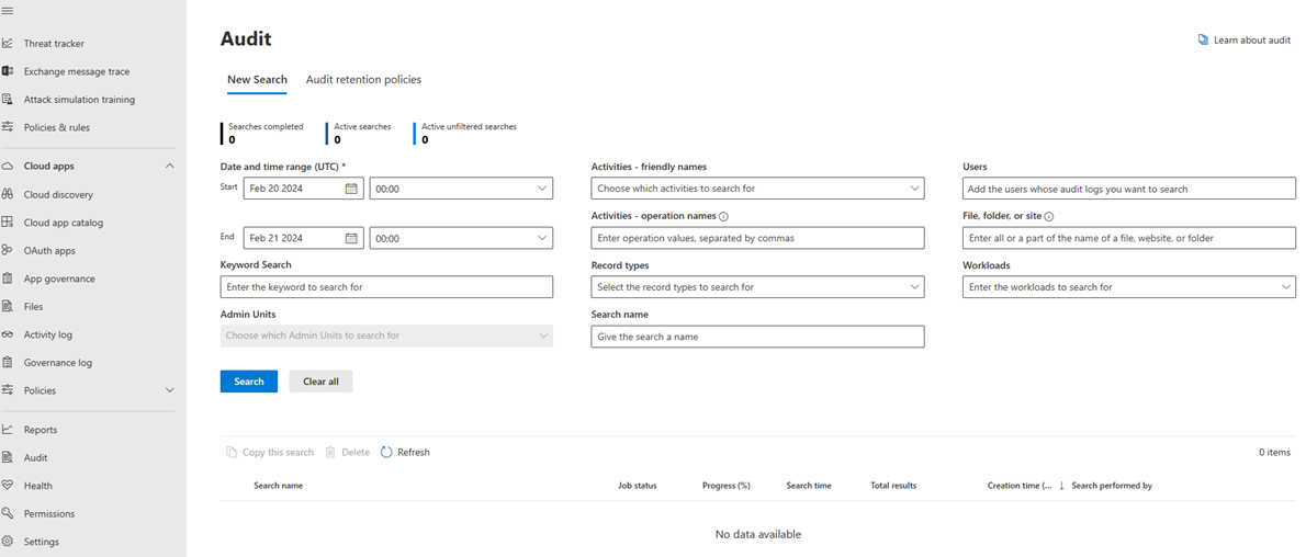 Microsoft Defender XDR bruger Microsoft Purview-overvågningsløsningen. Før du kan se på overvågningsdataene på Microsoft Defender-portalen, skal du aktivere overvågning på Microsoft Purview-portalen. Du kan få flere oplysninger under Slå overvågning til eller fra.