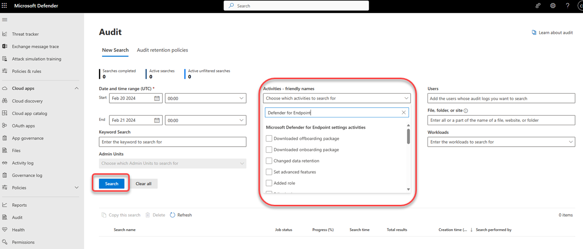 Overvågningsloggen hjælper dig med at undersøge bestemte aktiviteter på tværs af Microsoft 365-tjenester. På Microsoft Defender-portalen overvåges Microsoft Defender XDR og Microsoft Defender for Endpoint aktiviteter. Nogle af de reviderede aktiviteter er: