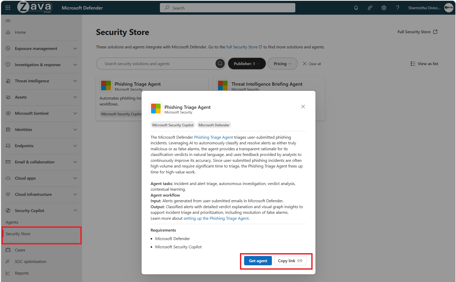 Hvis du vil vide mere om publiceringsagenter i Security Store, skal du se Publicer agenter til Microsoft Security Store.
