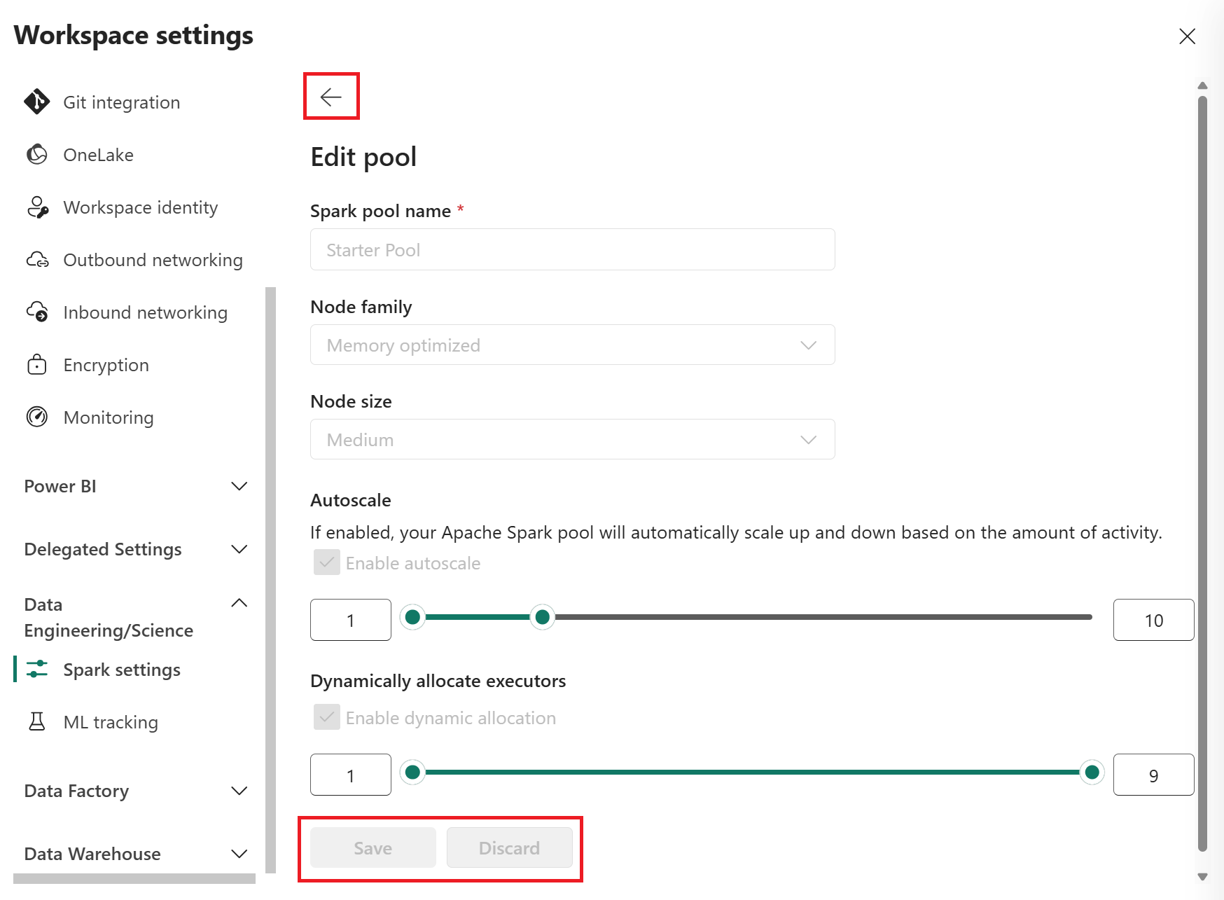 Efter at have foretaget dine ændringer, vælg Save for at anvende de nye indstillinger for startpoolen eller vælg Discard for at kassere dine ændringer. Ellers kan du vælge tilbage-pilen for at afslutte uden at gemme eller kassere ændringer.
