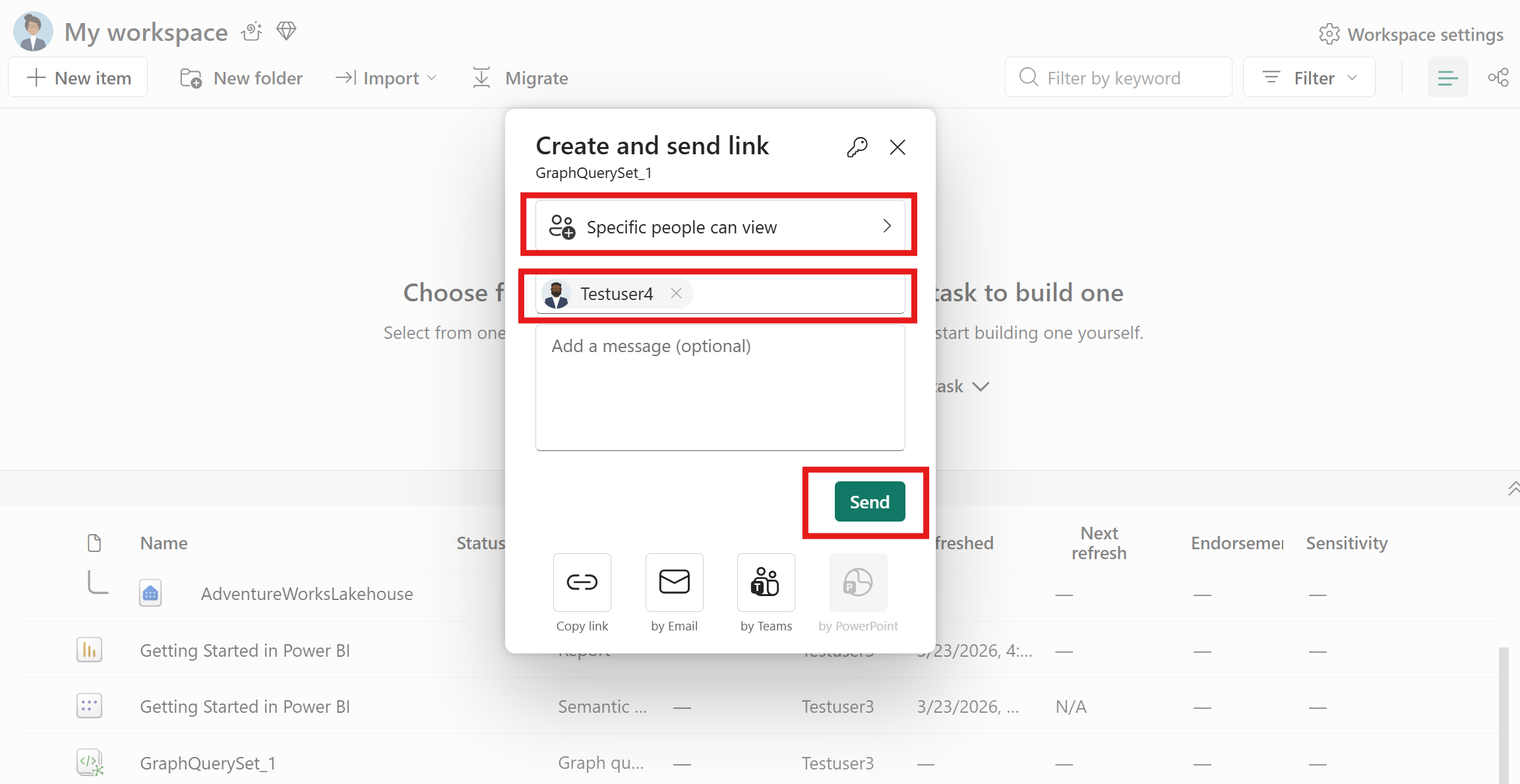 Den delte modtager har også brug for læseadgang til den underliggende grafmodel for at køre forespørgsler fra QuerySet. Hvis de ikke har adgang til grafmodellen, del den separat eller tilføj modtageren til en arbejdsområderolle.