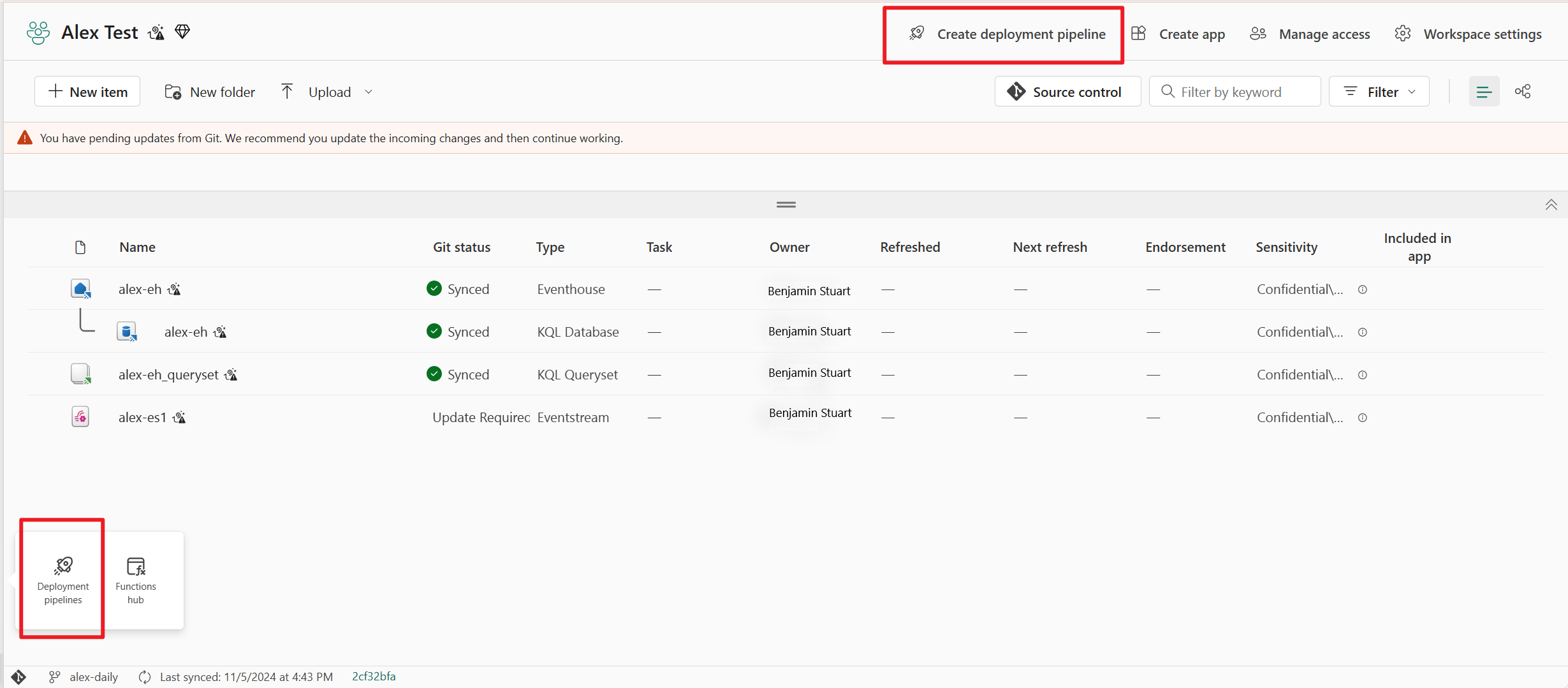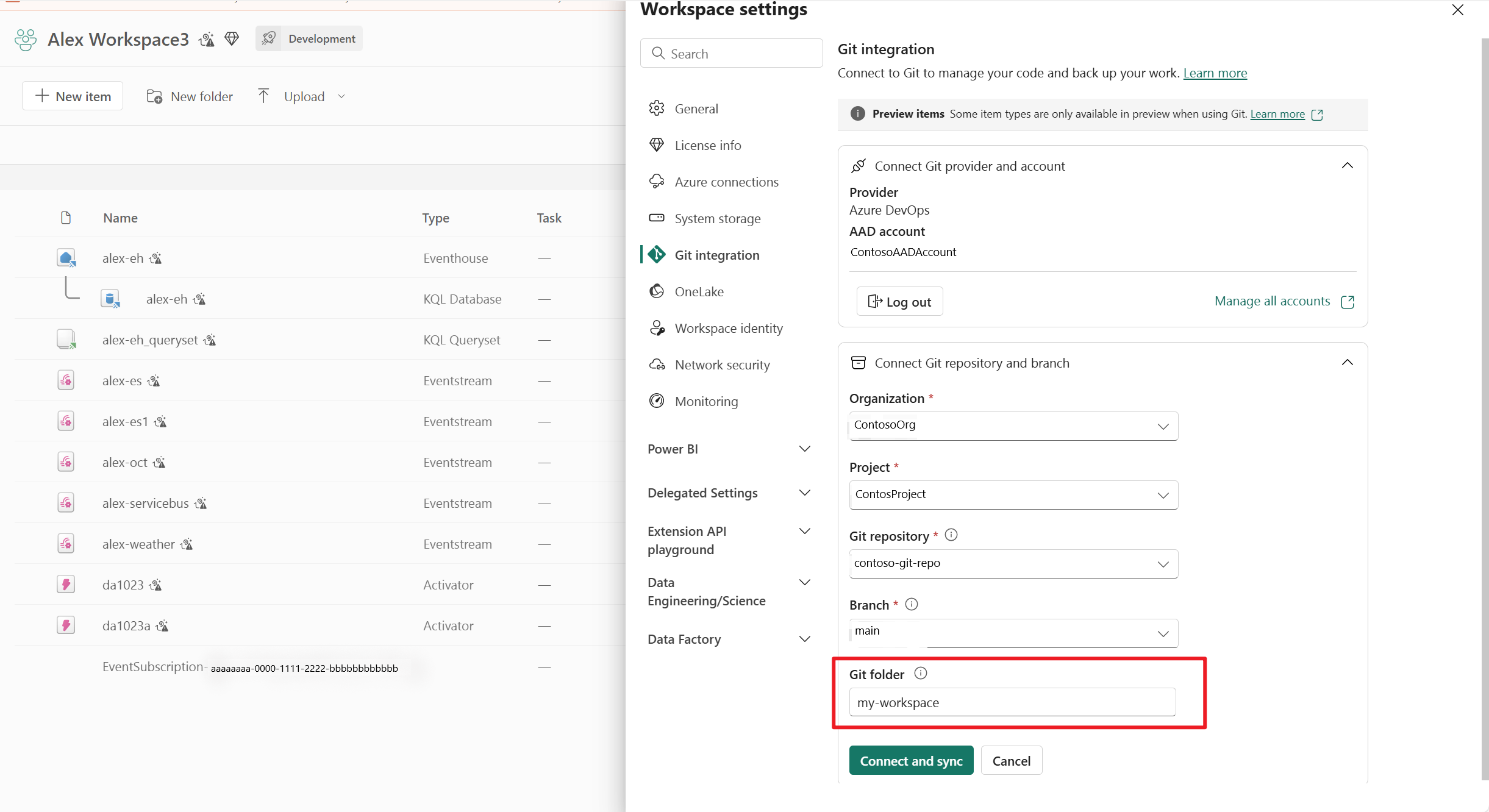 - Brug Git-integration til at synkronisere et arbejdsområde til et git-lager og administrere trinvise ændringer, teamsamarbejde og bekræftelseshistorik i Eventstream-elementer.