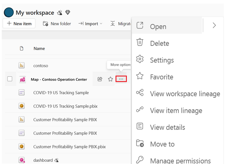 - Vælg ellipsen (...) ud for kortnavnet i arbejdsområdet.