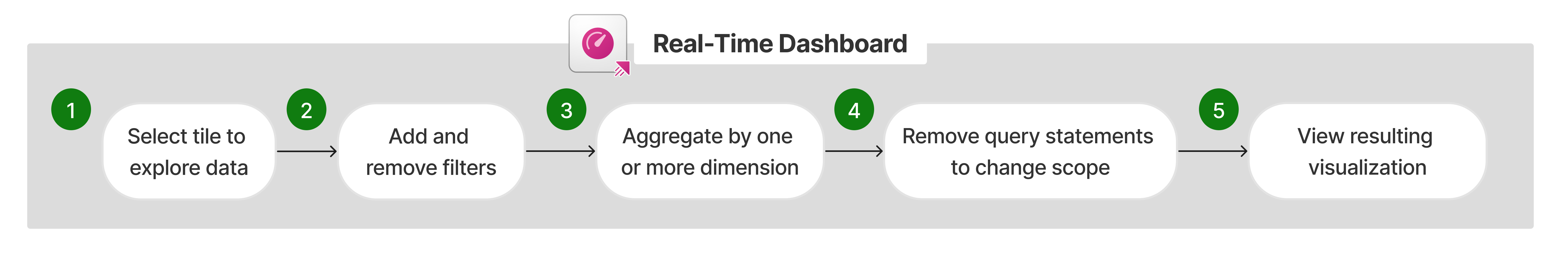 Dette brugerflow viser, hvordan en indsigtsoversigt kan bruge et realtidsdashboard til at forstå data med høj granularitet i den virkelige verden, udtrække indsigt, analysere bestemte aktiviteter visuelt og identificere handlinger, der skal udføres.