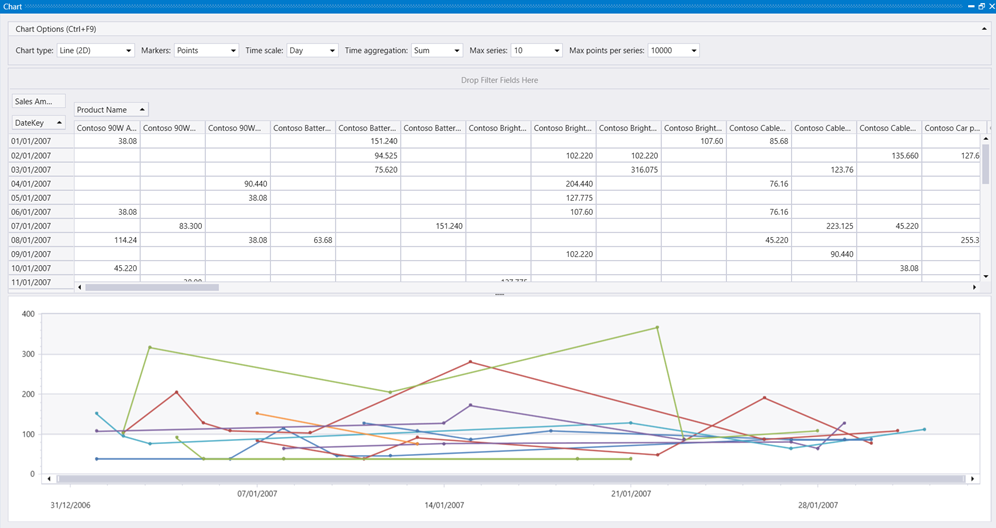 This query provides a detailed analysis of sales for Contoso computer products within the specified date range, visualized as a pivot chart.