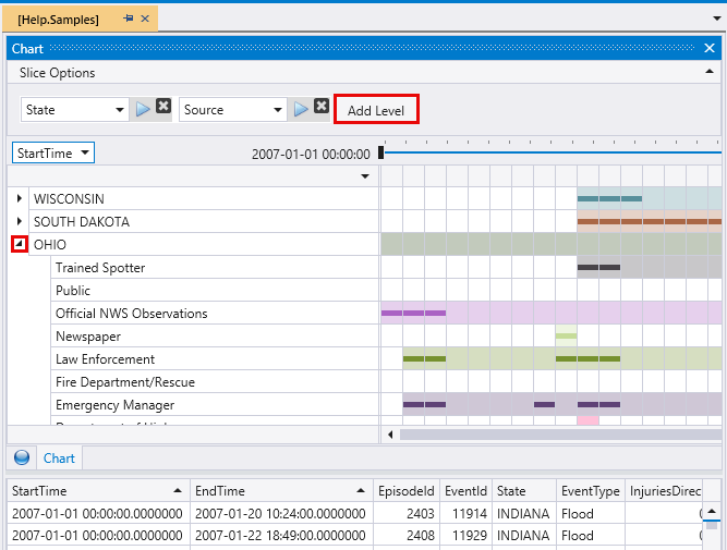 Add slice option levels to further investigate and interact with the data. Expand each row to see the levels added.