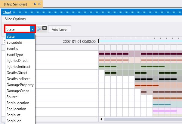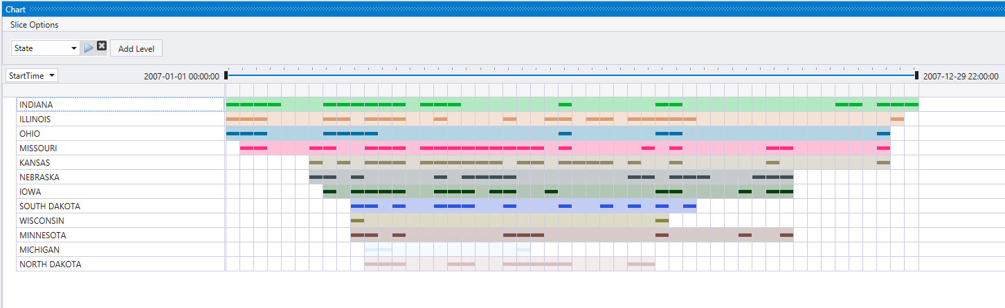After you render the time pivot, you can further investigate and interact with the data by adding slice levels, and by drilling into specific time slices. The data in the table updates interactively according to the slice options you configure. The slice options that are available are: